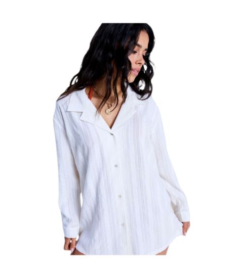 De Roxy SUNSET BACK uit de collectie van 2026 is een wit (Bright White) kledingstuk voor dames. Dit item van het merk Roxy valt binnen de categorie Dames kleding, T-shirts en is ontworpen voor een actieve strandlifestyle. De stof bestaat uit een katoenmix met een geweven verticaal streeppatroon. Door de luchtige samenstelling is het shirt geschikt als cover up voor sportieve gebruikers.